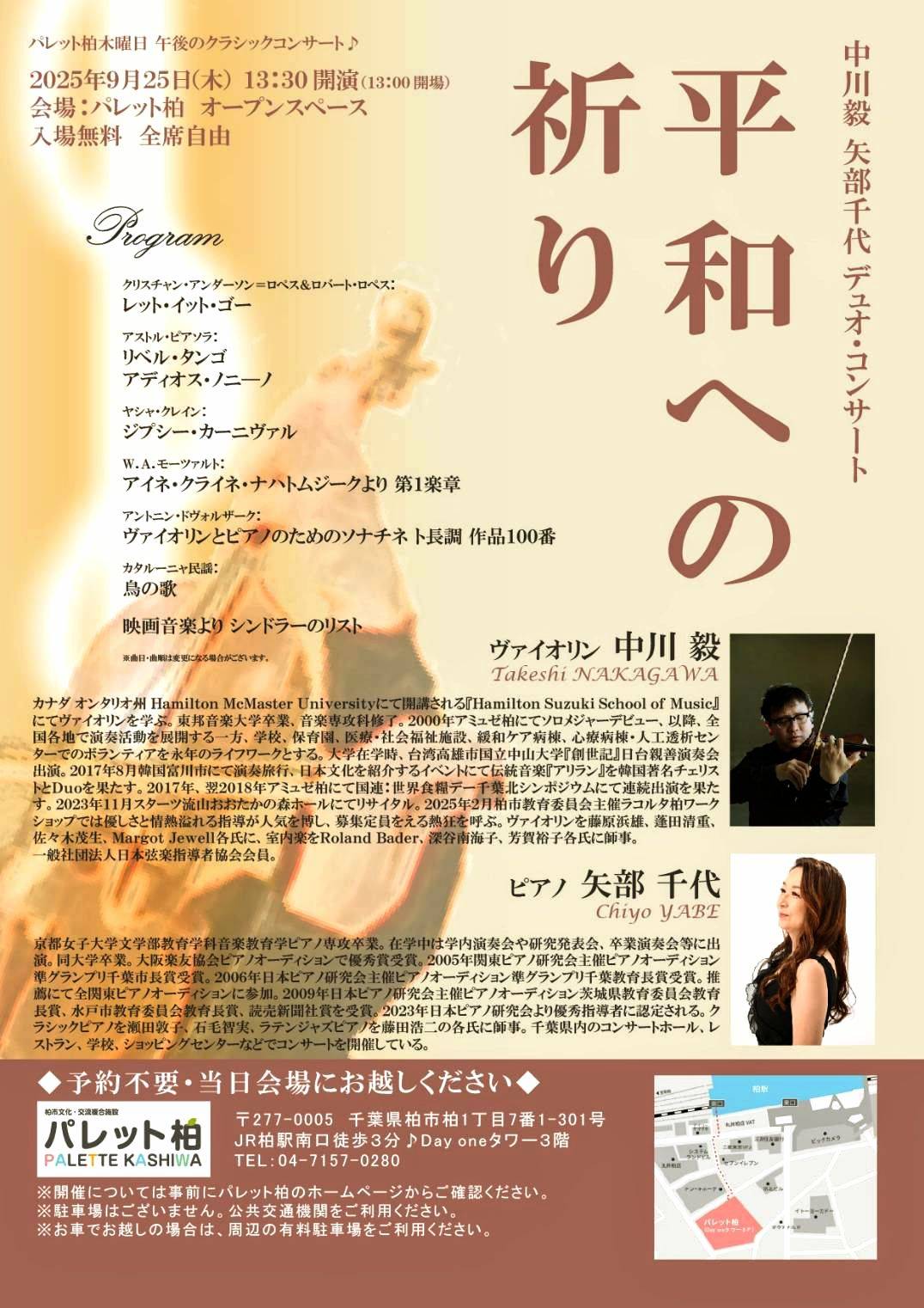 ★2025年2月8日、9日、柏市教育委員会文化課よりオファーを受けラコルタ柏にて「中川毅バイオリンワークショップ&バイオリンとピアノコンサート」を2日間に渡り開催。