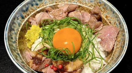 和歌山県から直送している紀州鴨を丸鶏から捌いて調理しているので、新鮮で美味しく味わっていただくことができます。トッピングの鴨肉は直前に炭火で炙り、香ばしく仕上げました。自家製のライ麦配合麺を合わせた唯一無二のらーめんです。