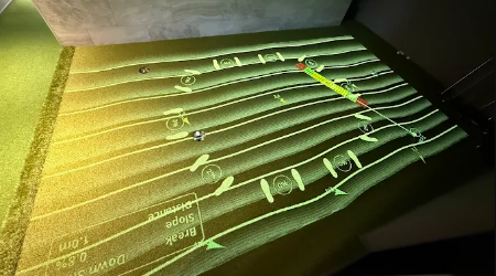 パッティングを本格的に練習できる施設を見たことがあるでしょうか?1〜2mほどのマットが敷いてあれば良い方だと思います。当店では本当にゴルフが上達できる場所を作ろう、と考え「TOURPUTT」という希少な最新設備を導入しました。こちらは最新のAR技術とAIのディープラーニング技術を駆使し、さまざまな傾斜で実際にパッティングをすることで自分の癖や傾向を可視化。効率的な上達を促します。