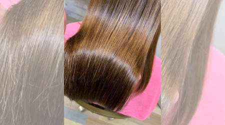 アイロンや強いコーティングによる酸熱トリートメント等ではなく、自然界にある有効成分から抽出されたトリートメントは今までにないツヤと手触りが自慢です。
