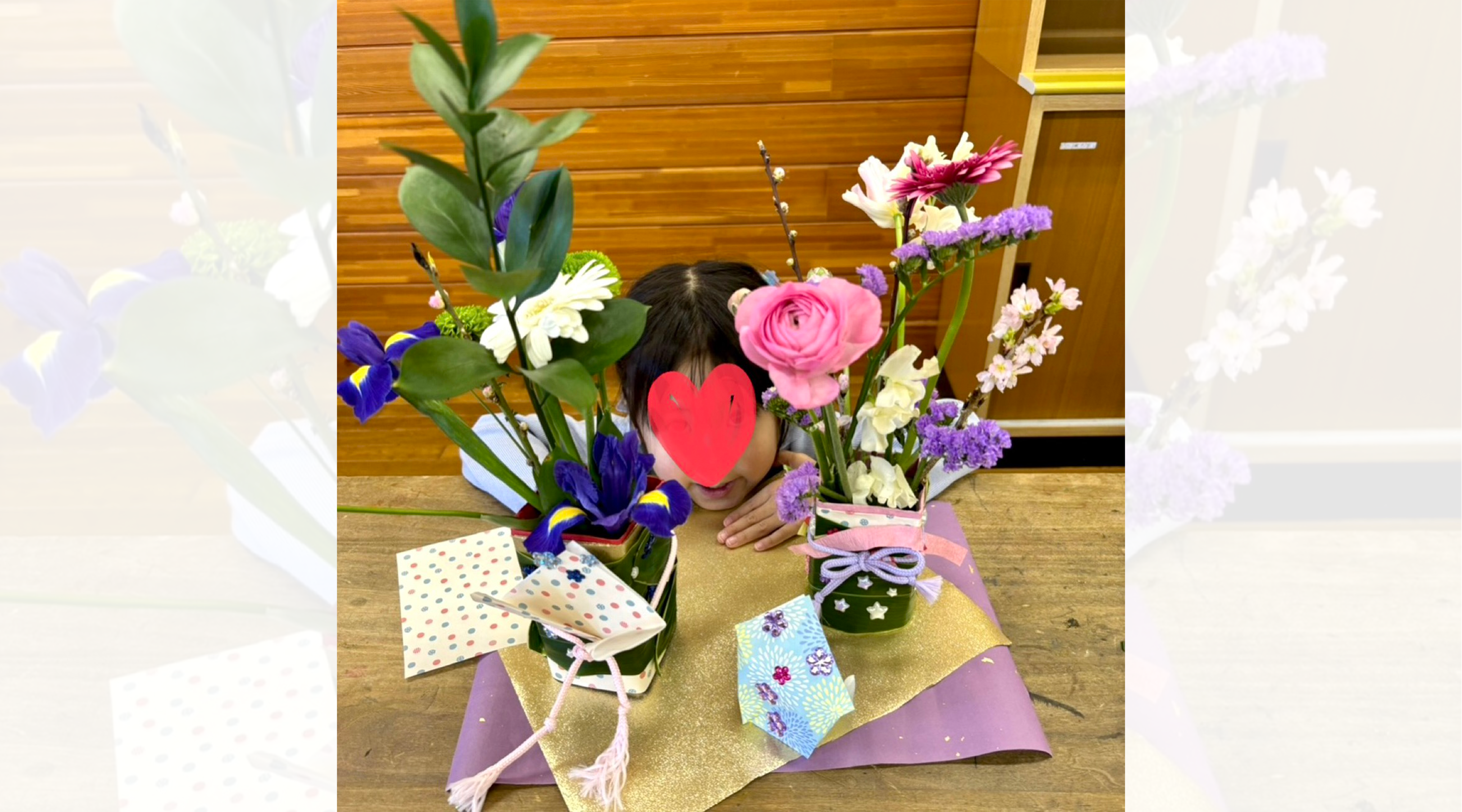 花育レッスンは、幼児〜小学生 を対象に花や植物に触れながら、 閃きを大切にテーマに沿って自由な 作品を作ってもらいます。